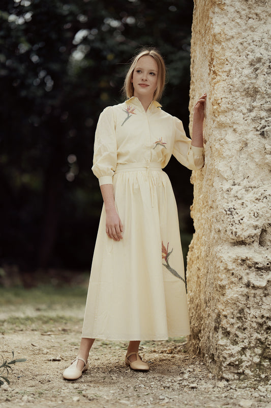 G822-YE - EMBELLISHED PRINTED DETAIL SHIRT AND SKIRT SET