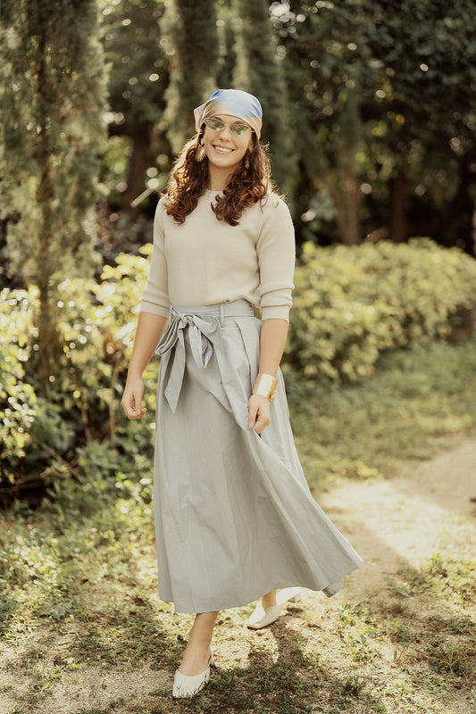 G868-BE - SMOCKED YOKE SKIRT