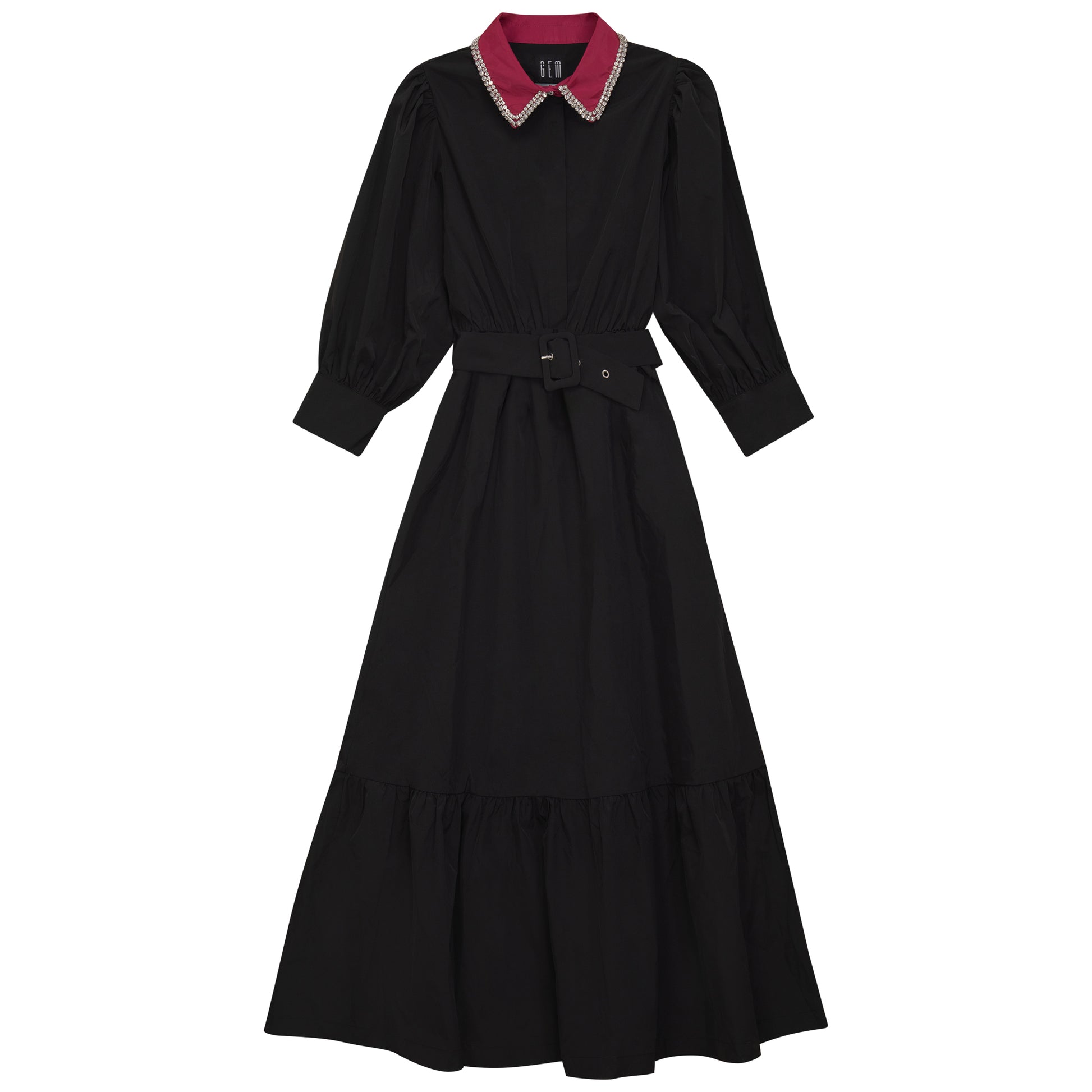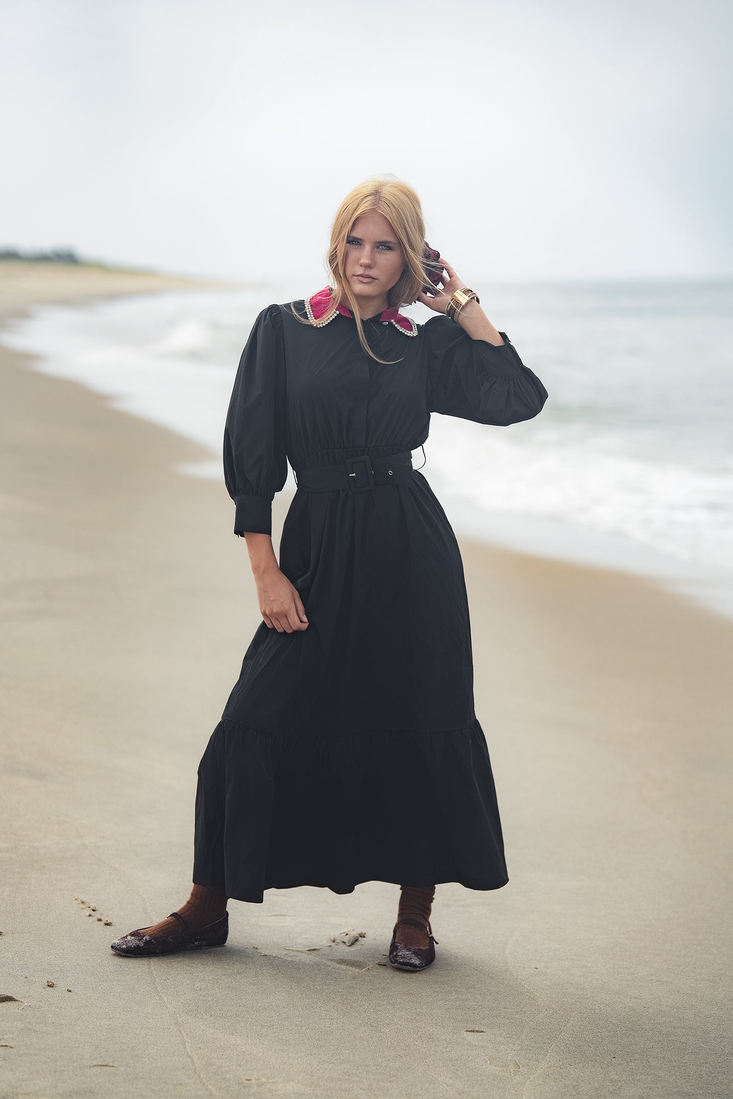 Elevate your wardrobe with the Gemstone Collared Maxi Dress, a refined piece that blends timeless elegance with modern sophistication.