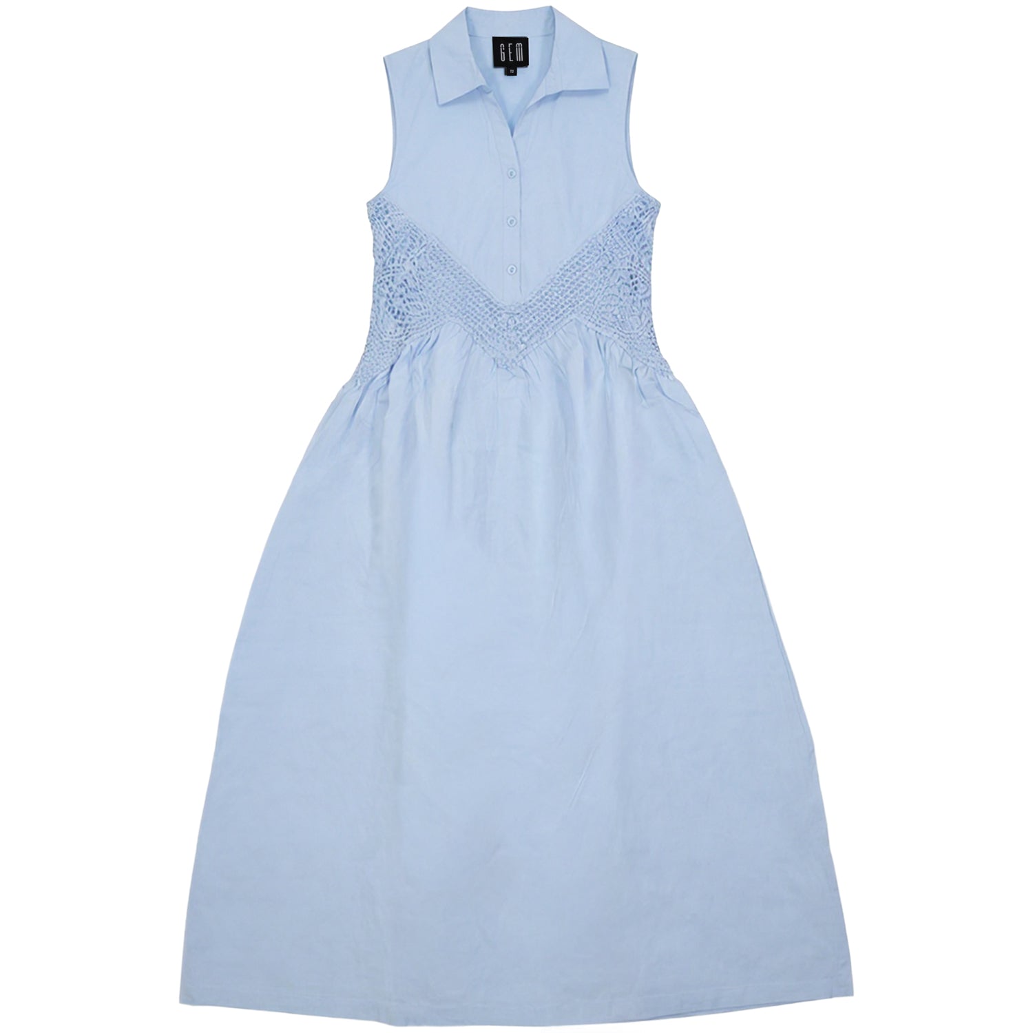This sleeveless dress combines timeless elegance with delicate craftsmanship. Intricate lace and crochet inserts add refined texture and visual interest, creating a graceful silhouette ideal for upscale events. A versatile piece that transitions beautifully from day to evening occasions.