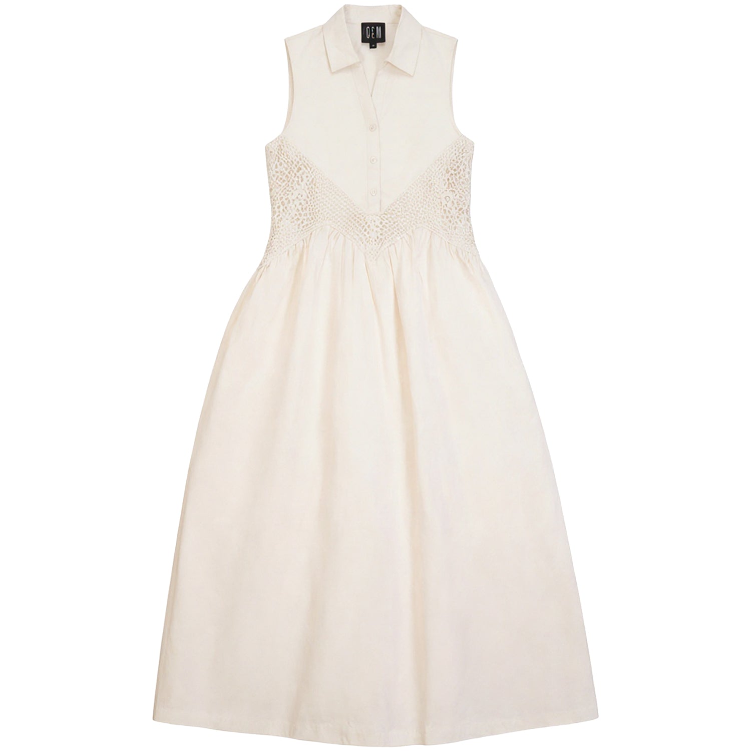 G816-CR - LACE CROCHET INSERT SLEEVELESS DRESS